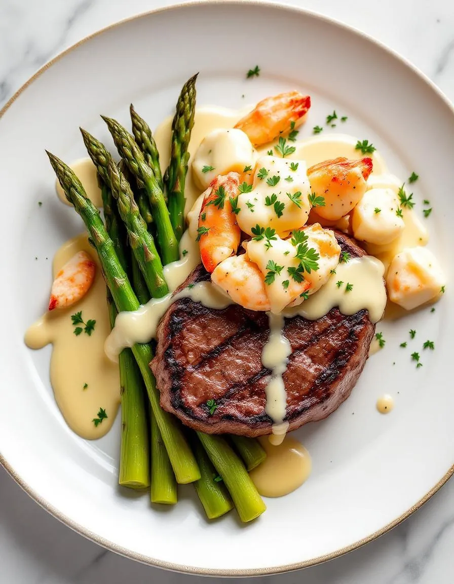 Luxe Oscar Style Steak with Crab & Asparagus aligns perfectly with balanced eating habits. If you follow a high-protein diet, the steak and crab provide ample fuel for workouts and recovery. For gluten-free eaters, this dish naturally avoids grains, focusing on whole, unprocessed ingredients.