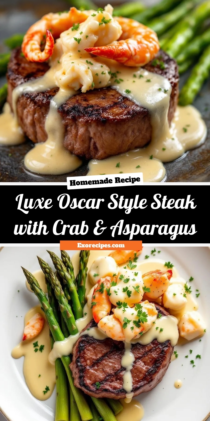 On Exorecipes, we celebrate dishes that marry simplicity with sophistication, and the Luxe Oscar Style Steak with Crab & Asparagus fits that ethos perfectly. If you’re new to cooking steak, our guide to perfect steak temperatures will help you nail the doneness every time. Meanwhile, if you’re looking for more ways to enjoy asparagus, check out our asparagus recipe roundup for inspiration. This dish isn’t just about taste—it’s about creating an experience, one that feels as rewarding to make as it is to eat.
