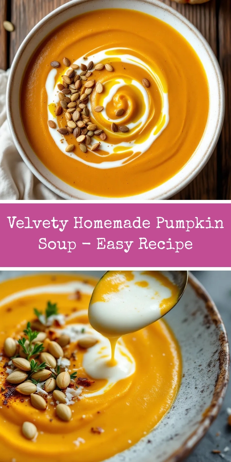 Enhance your velvety homemade pumpkin soup 🎃🍲 with a swirl of coconut milk or cream, a dash of maple syrup for sweetness, or a sprinkle of toasted pumpkin seeds and croutons for crunch. A pinch of smoked paprika or nutmeg also adds wonderful depth.